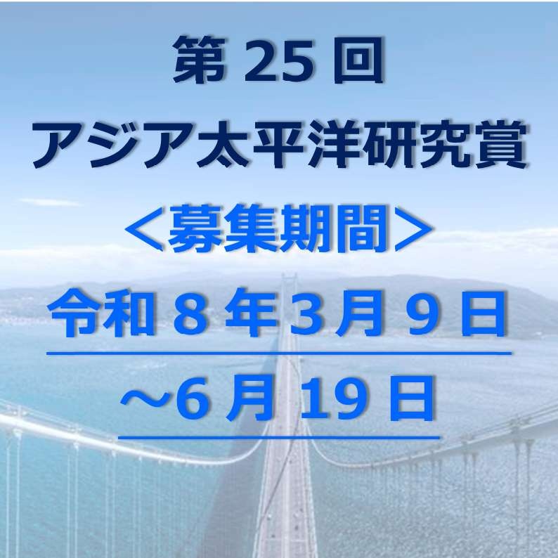 第25回アジア太平洋研究賞は3月上旬募集開始予定です。